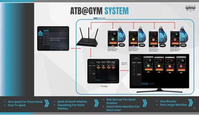 The ATB@GYM System is designed specifically for group training and is easily installed into any boxing or fitness studio environment. Fitness members will be paired to individual i-pads to track their Aquabag activity. The data is broadcasted live onto a large video monitor.